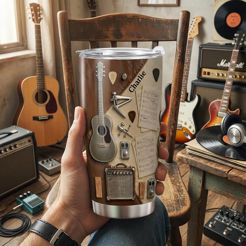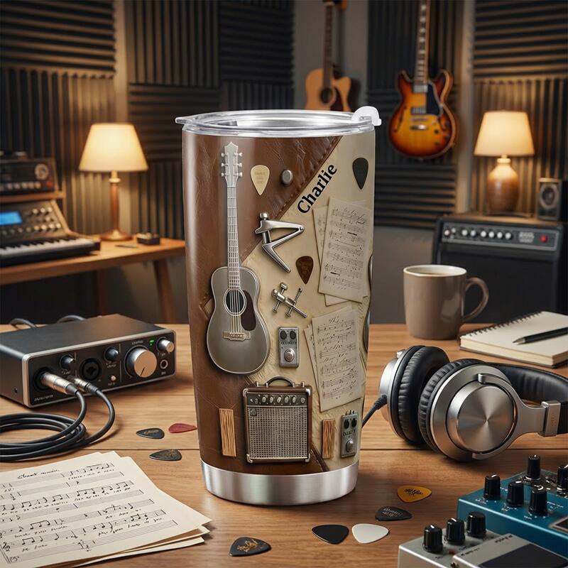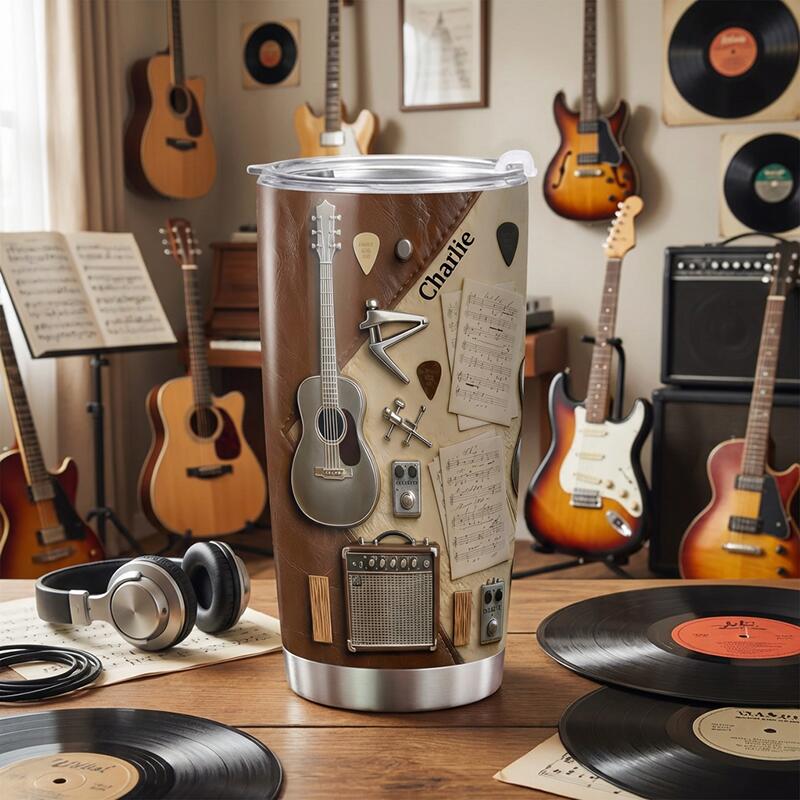 Personalized Name Tumbler Guitar-Themed Simple Gift for Music Lovers