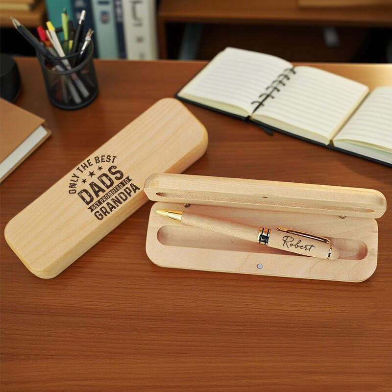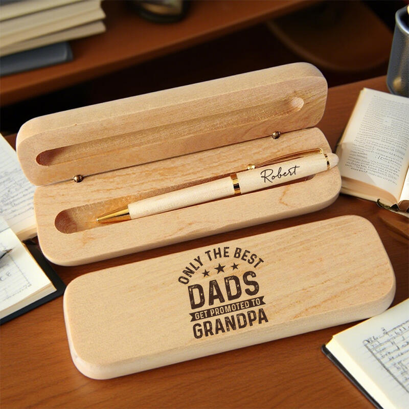 Personalized Pen Wooden Box Only The Best Dad Promoted To Grandpa Perfect Gift for Grandfather