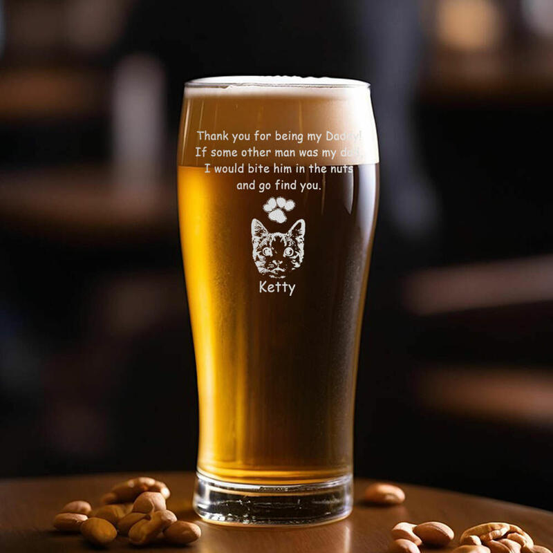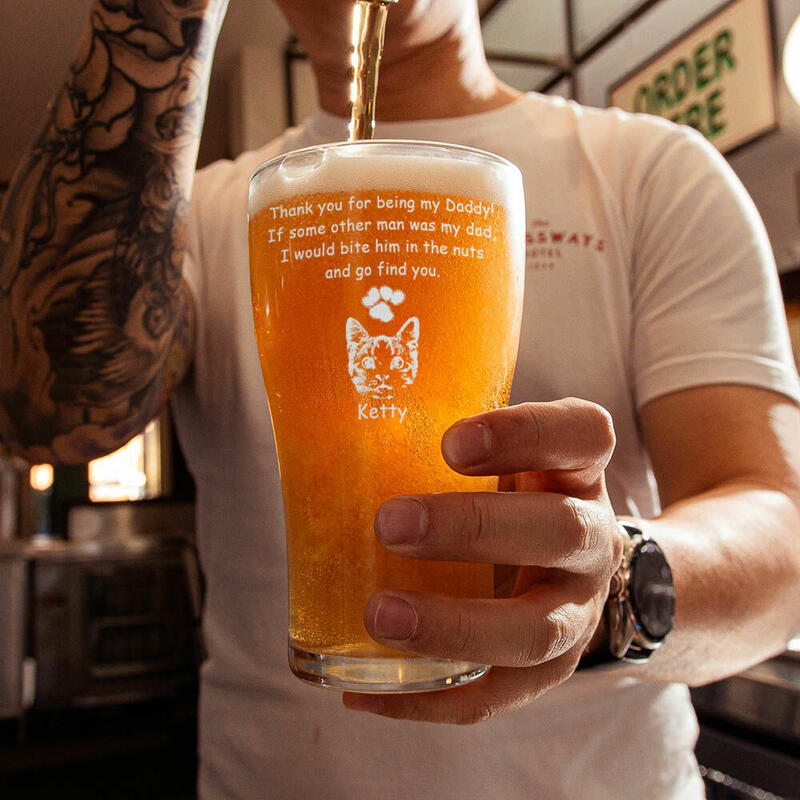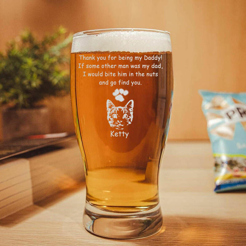 Personalized Picture Beer Glass with Pawprint Pattern Lovely Gift for Pet Lover "Thank You For Being My Daddy"