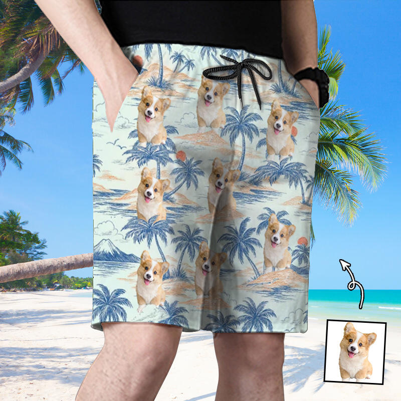 Personalized Picture Men's Beach Shorts with Sunset Pattern Great Gift for Brother