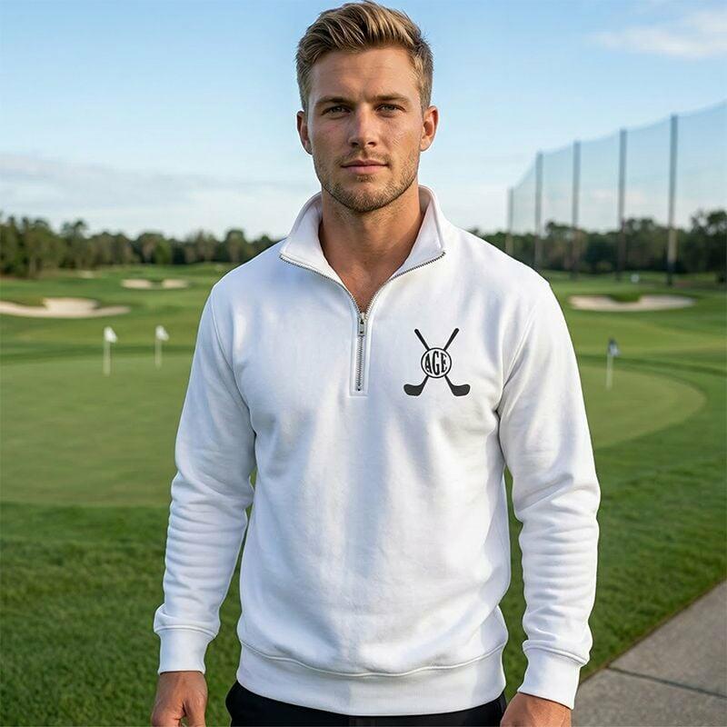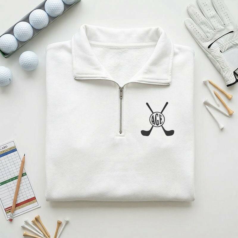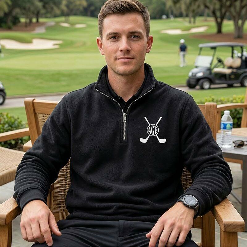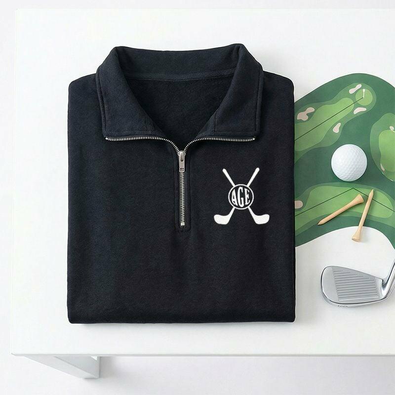Personalized Quarter Zip Sweatshirt Embroidered Custom Initials Golf Club Design Perfect Gift for Sports Lover