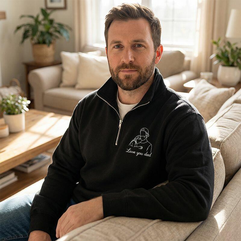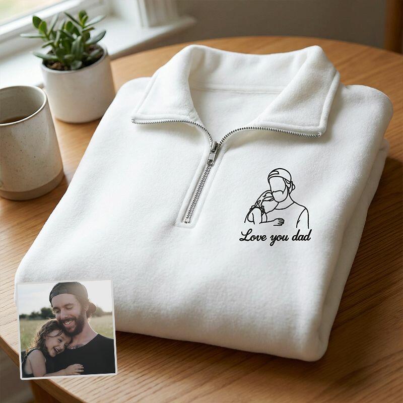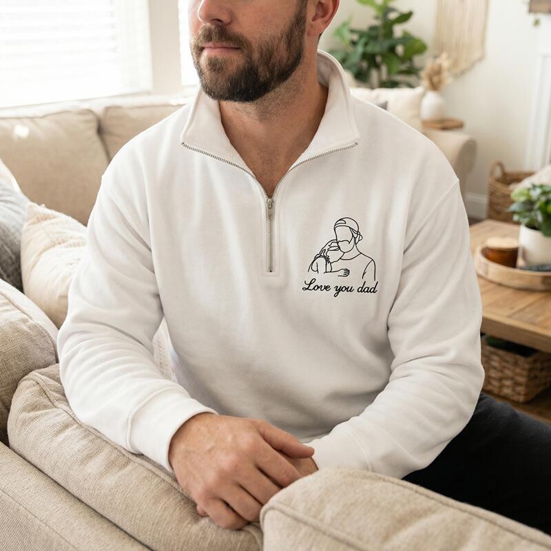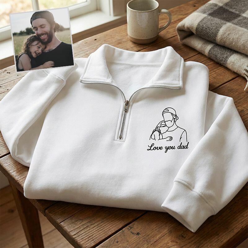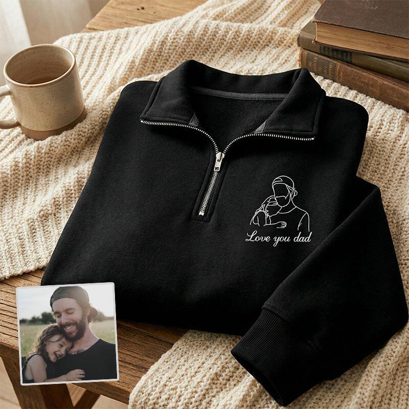 Personalized Quarter Zip Sweatshirt Embroidered Custom Photo Line Design Warm Father's Day Gift for Dear Dad