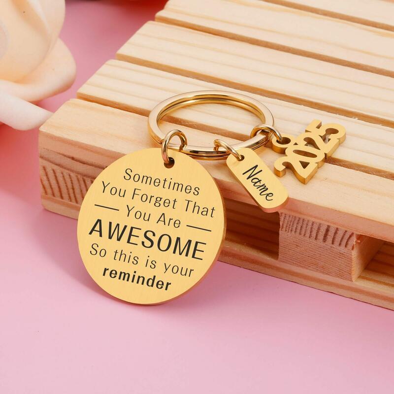 Personalized Round Keychain Custom Made with Name and Year Graduation Gift for Classmates