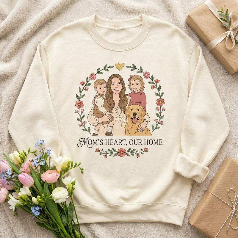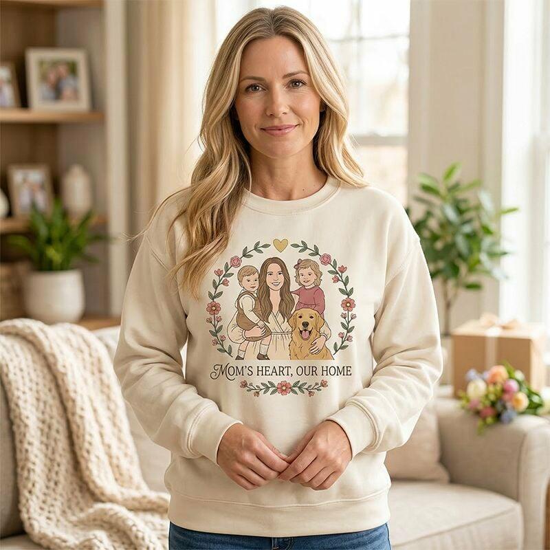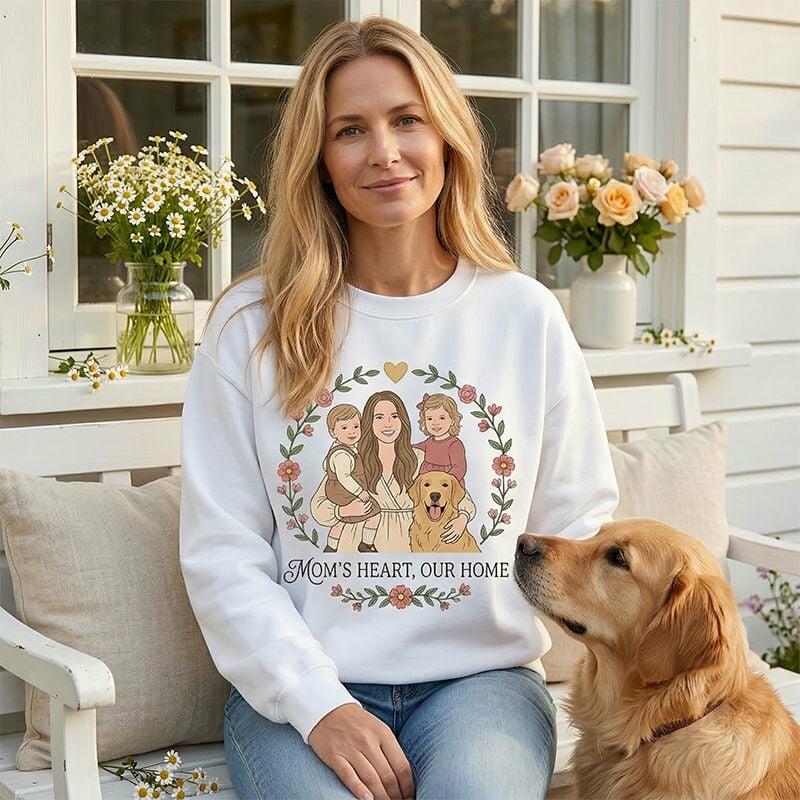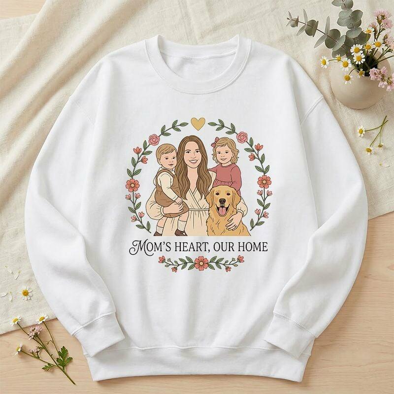 Personalized Sweatshirt Custom Photo Mother's Heart Our Home Wreath Design Exquisite Mother's Day Gift