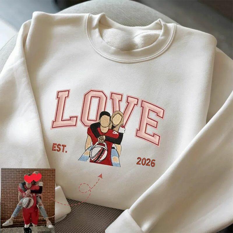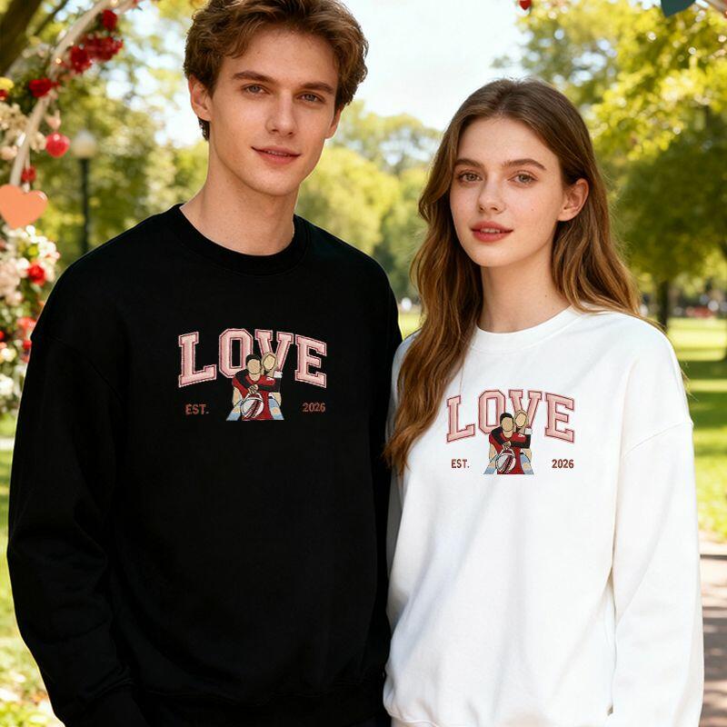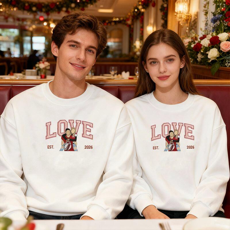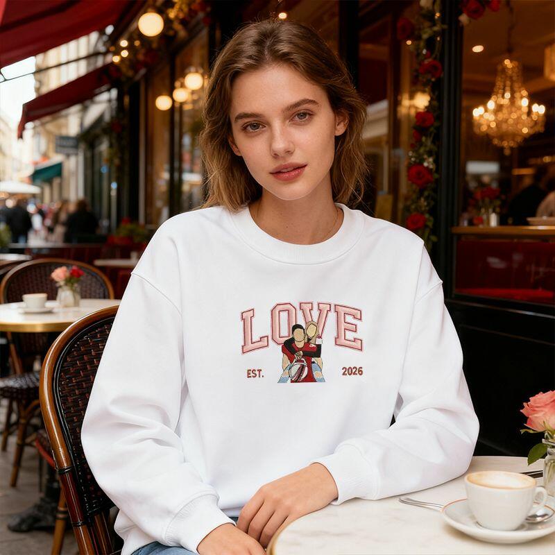 Personalized Sweatshirt Embroidered Custom Couple Photo Love Design Exquisite Valentine's Day Gift for Lovers