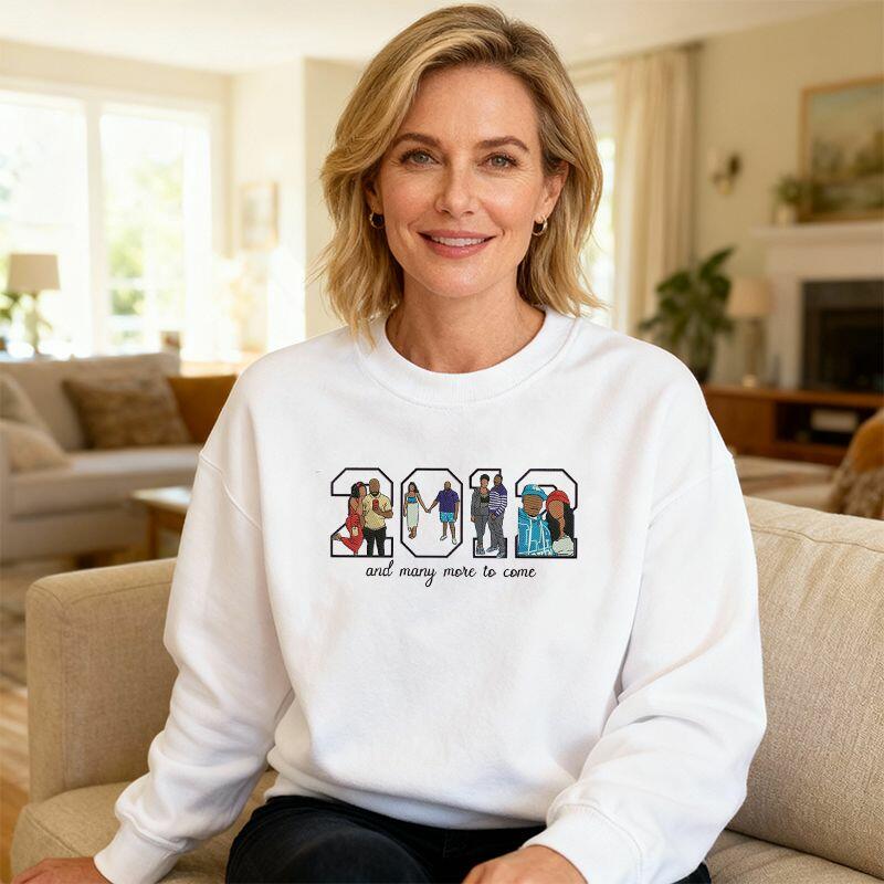 Personalized Sweatshirt Embroidered Custom Year and Photos Design Creative Anniversary Gift for Couples