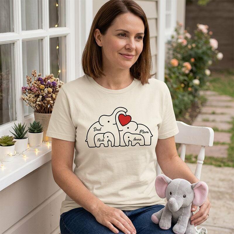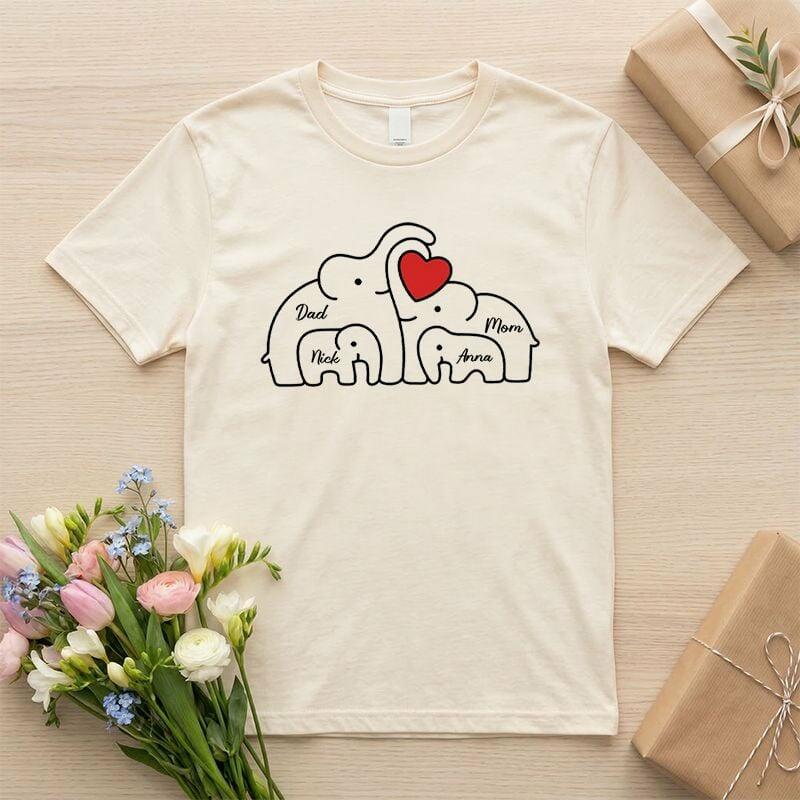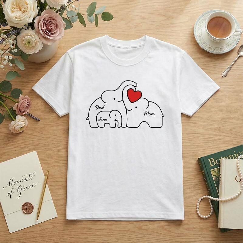 Personalized T-shirt Elephant Family Line Puzzle Custom Names Design Adorable Gift for Mother's Day