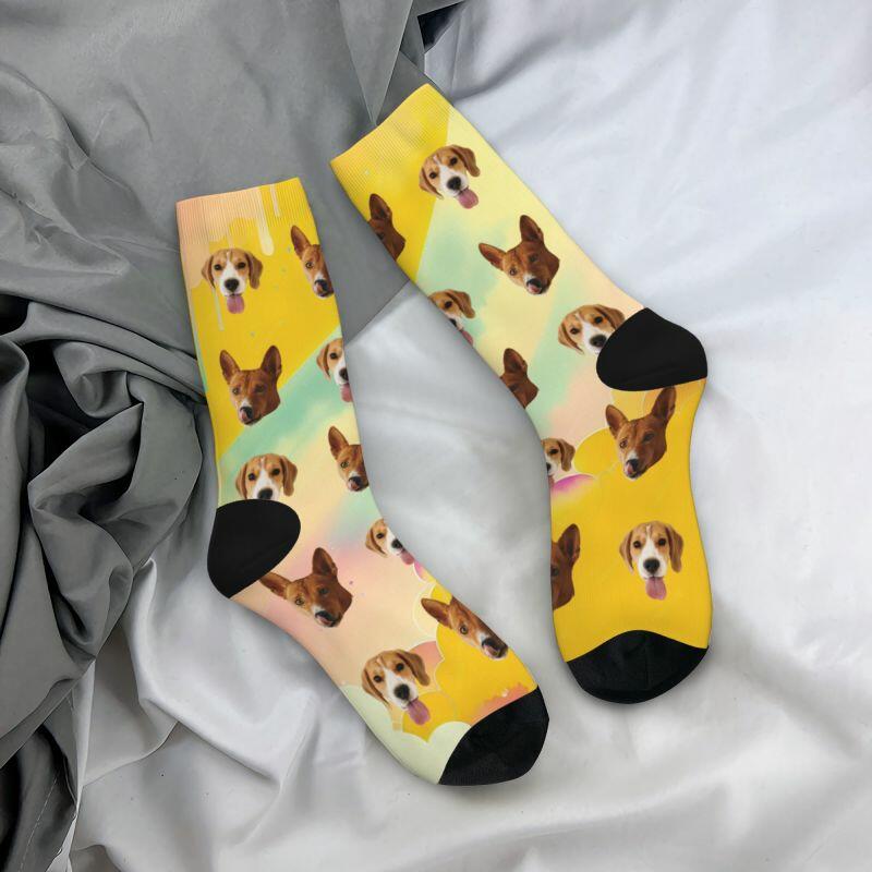 Personalized Tie Dye Face Socks Rainbow Printed with 2 Pet Photos