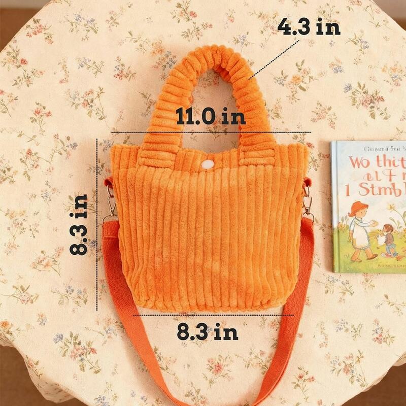This versatile corduroy bag is the perfect accessory for your little one, designed to be both functional and irresistibly cute. Crafted from soft, ribbed corduroy fabric, it feels gentle against the skin while offering durable daily use. It features a comfortable top handle and a detachable, adjustable shoulder strap, so kids can carry it as a handbag or wear it crossbody for hands-free convenience—ideal for school, playdates, or family outings.