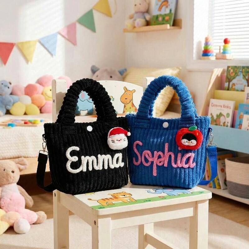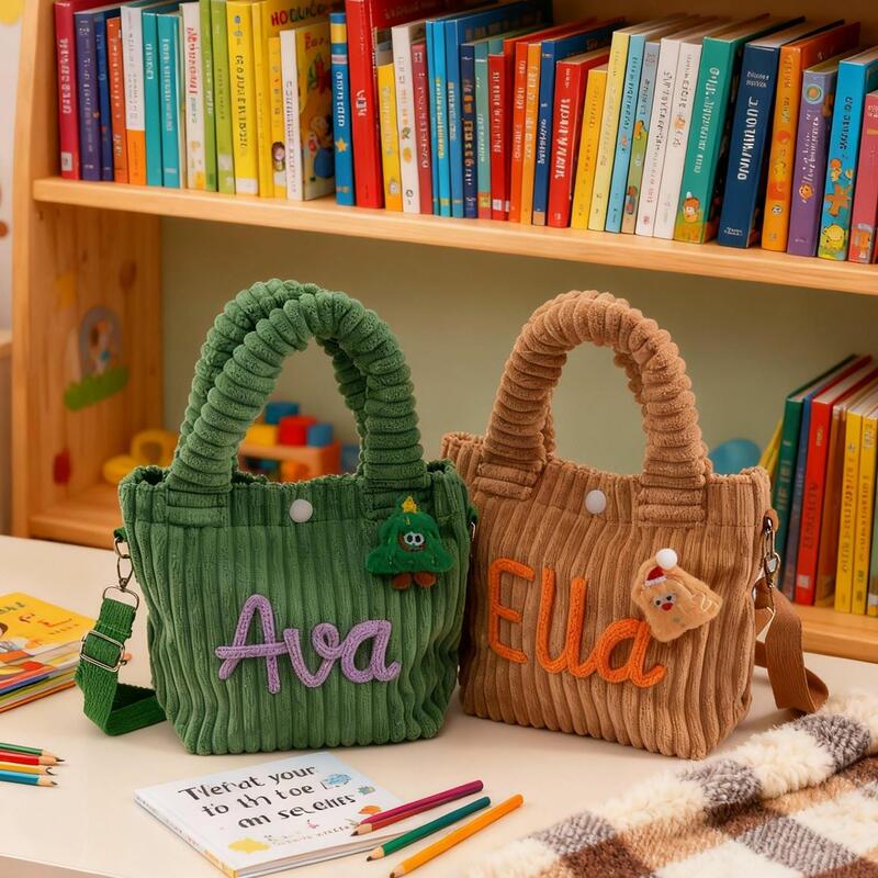 This charming bag makes a thoughtful gift for birthdays, back-to-school season, holidays, or any special occasion. It’s perfectly sized to hold small essentials like snacks, a favorite toy, or school supplies, and its lightweight, cozy design is ideal for short trips, park visits, and everyday adventures. Whether for a girl or boy, this personalized corduroy bag combines practicality, comfort, and playful style—sure to become a beloved favorite for your little one.