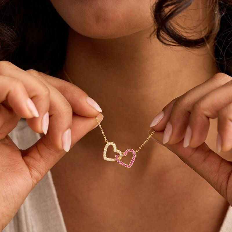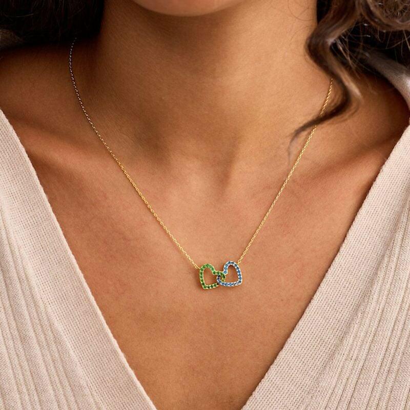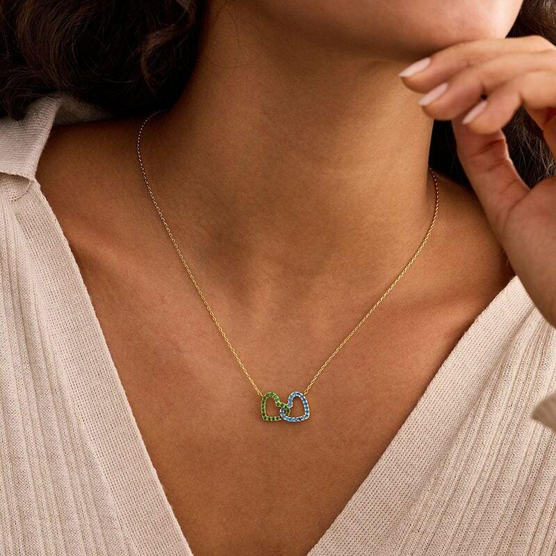 Personalized Twin Birthstone Heart Necklace Beautiful Gift for Your Loved One