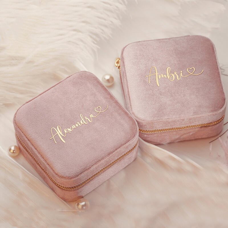 This velvet jewelry box will provide you with a beautiful and high-end gift option for your female friends. It features customizable text and graphics, allowing you to create a personalized gift for the recipient. This velvet jewelry box has a beautifully designed exterior with meticulous attention to detail, giving it a high-end feel. It is made of high-quality velvet material, which is soft to the touch and smooth in appearance, giving it a comfortable and luxurious feel. Whether placed on your bedside table or carried in your handbag, this jewelry box will add elegance and class to your female friends. Best of all, you can customize the text and patterns on the jewelry box according to your needs. Whether it's the recipient's name, a special date, or a special text or pattern, the jewelry box can be precisely customized to make it a one-of-a-kind gift. Such personalization will make the gift more special and meaningful, letting the recipient feel your care and concern.