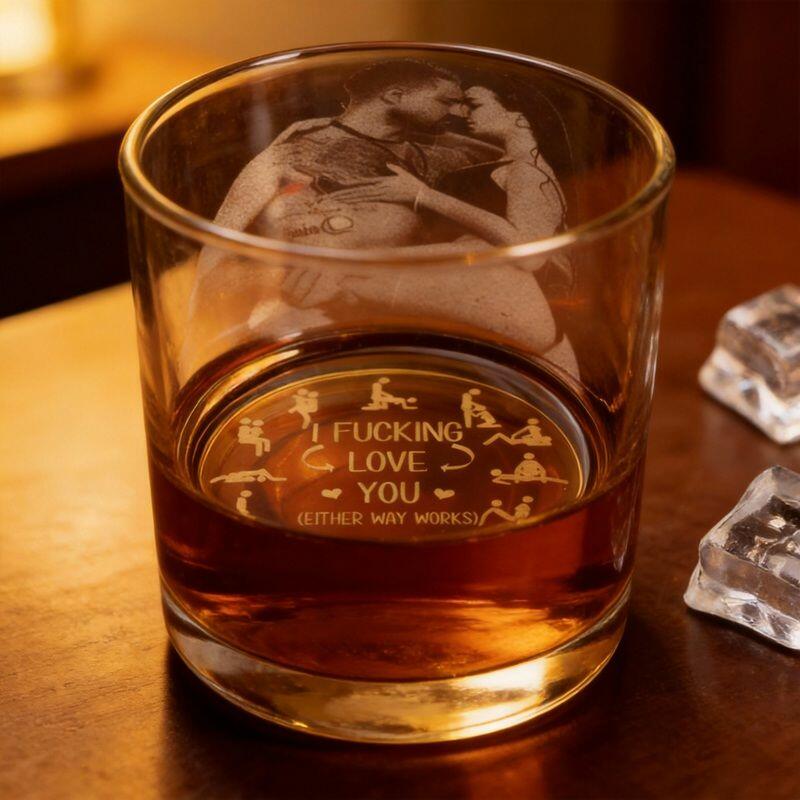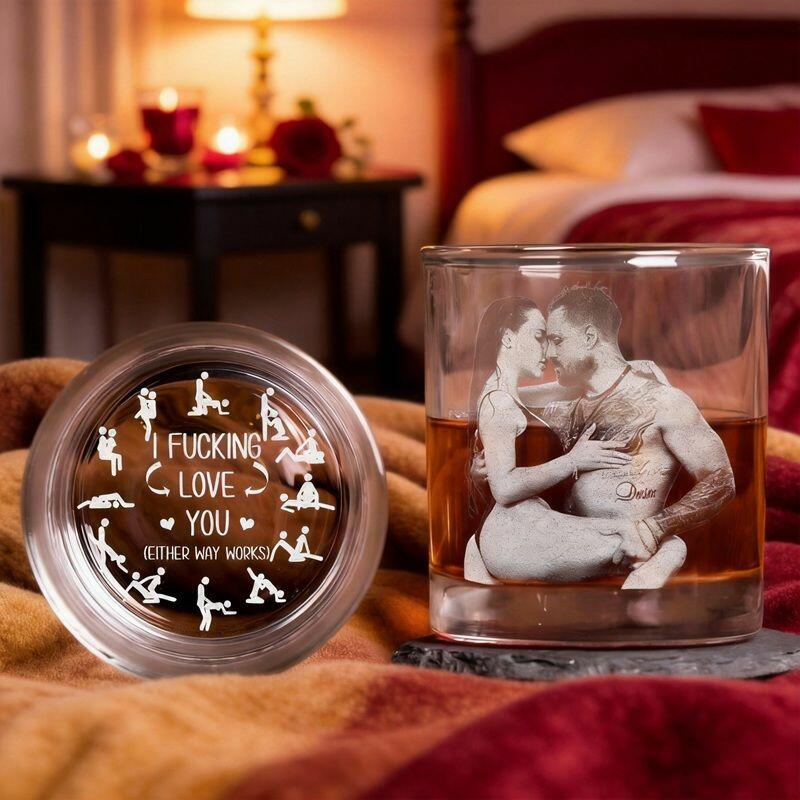 Personalized Whiskey Glass I Love You Either Way Works Custom Sexy Photo Naughty Gift for Couples