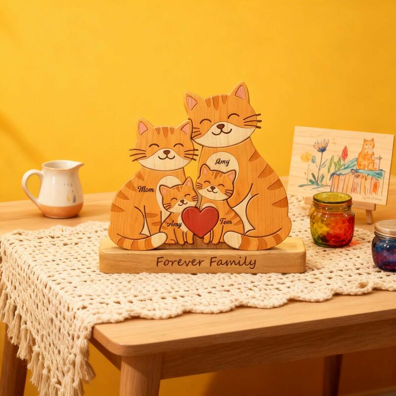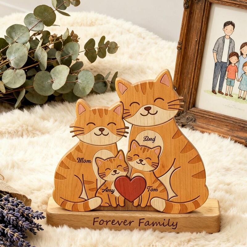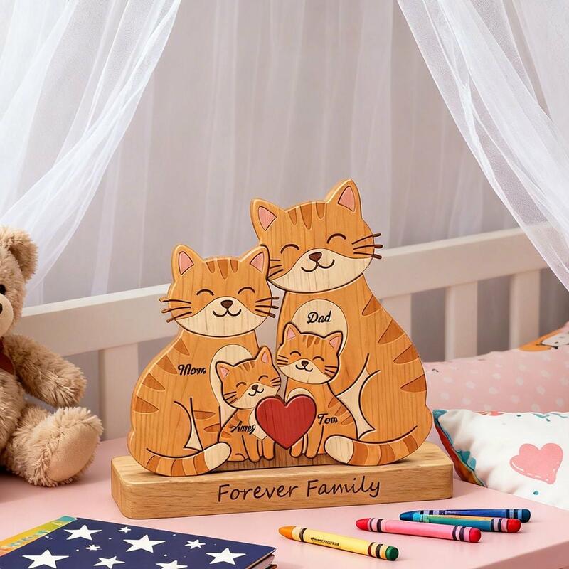 Nothing can compare to the serene and warm familial affection within a family. This personalized cat family wooden jigsaw puzzle perfectly captures this bond of love. Each gentle curve and shared sentiment in it embodies this emotion. It is not just a piece of decoration, but a tangible symbol of home itself. It carries love, laughter, and reunion, making the house a true home. From loving parents to lively little ones, each cat shape is accompanied by a name, telling your unique story, transforming ordinary wood into an extraordinary symbol, representing your eternal family.